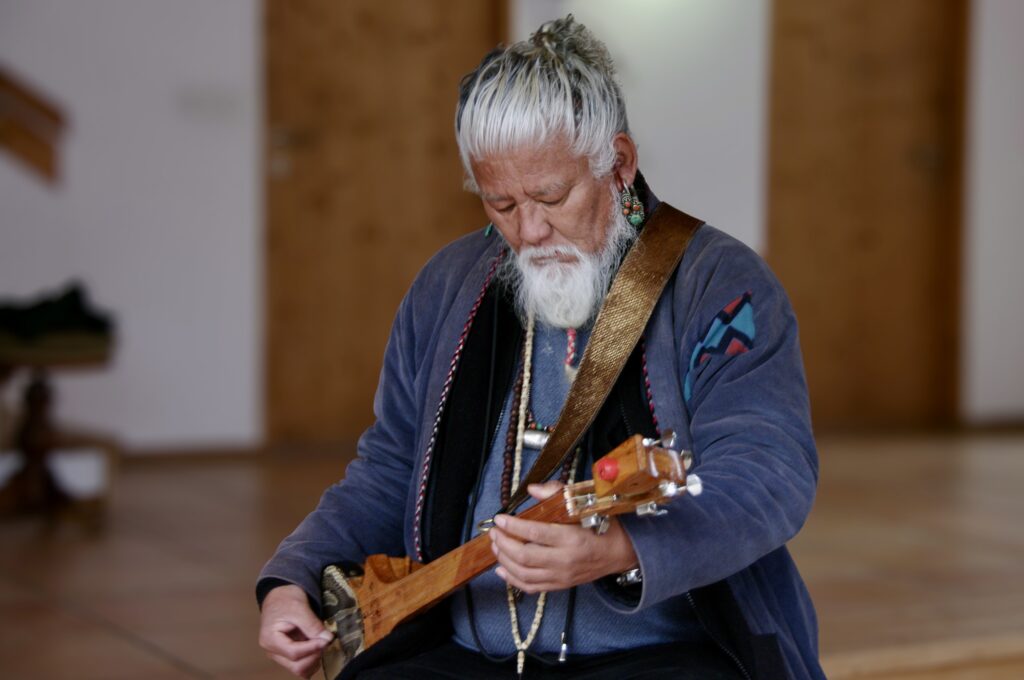 Später, im Berner Kulturlokal Turnhalle, wählt Namling einen Tisch am Rand. Mit seinem offenen Mantel, den langen Haaren und dem wachen Blick gibt er eine wahrlich königliche Erscheinung ab. Umgehängt hat er sich Ketten und sakralen Schmuck: eine buddhistische Gebetskette und ein silbernes Röhrchen mit einem Mantra darin, das ihn beschützen soll. Neben ihm liegen die Flöte und die Laute, sein Hauptinstrument.